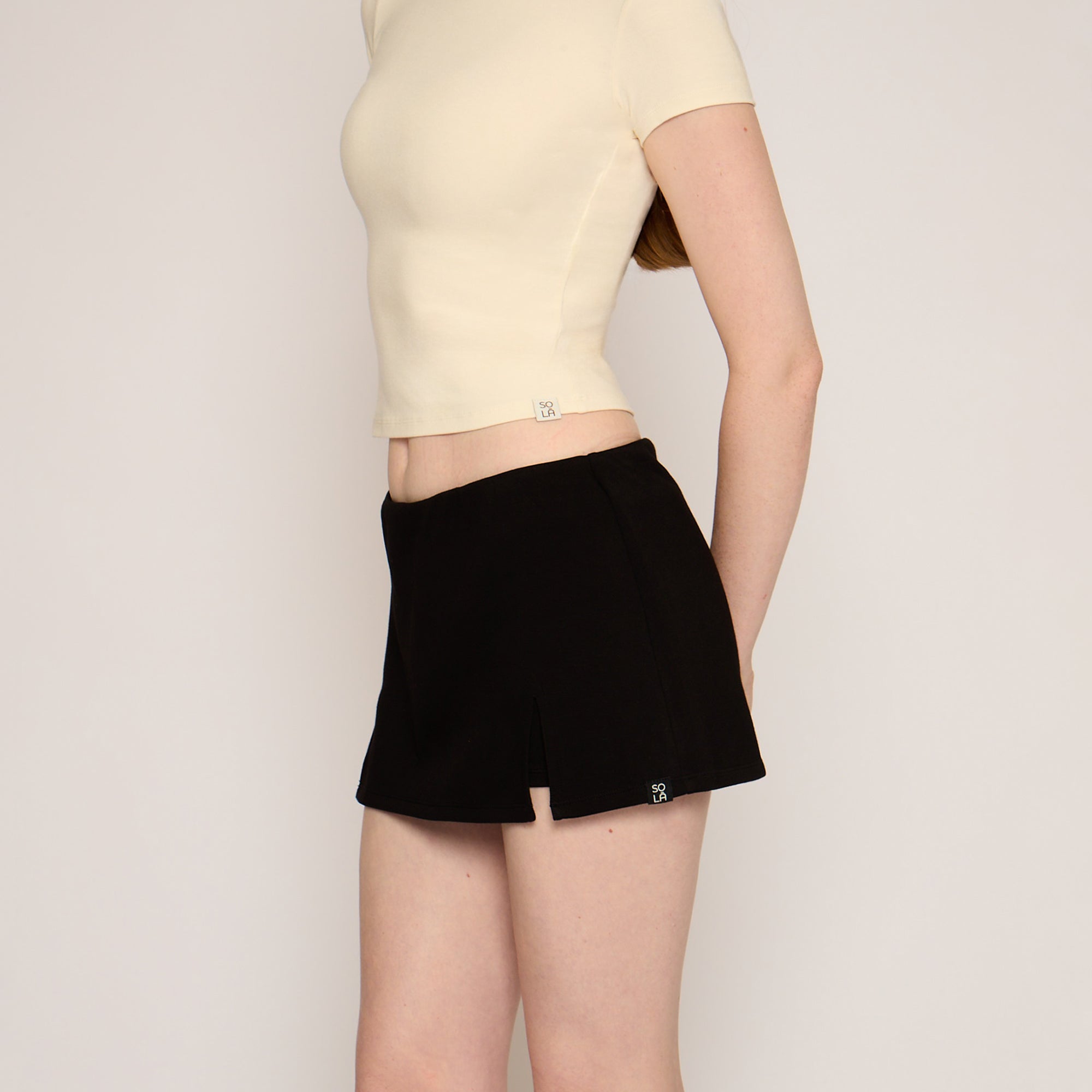 The Basic Mini Skirt with Inner Shorts is made from a soft Tencel–rayon blend that feels smooth and breathable against the skin. Designed with built-in inner shorts for added coverage and comfort, it lets you move freely without compromise. The outer skirt features two front slits for ease of movement. A discreet external logo on the hem adds SOLÁ’s signature touch.