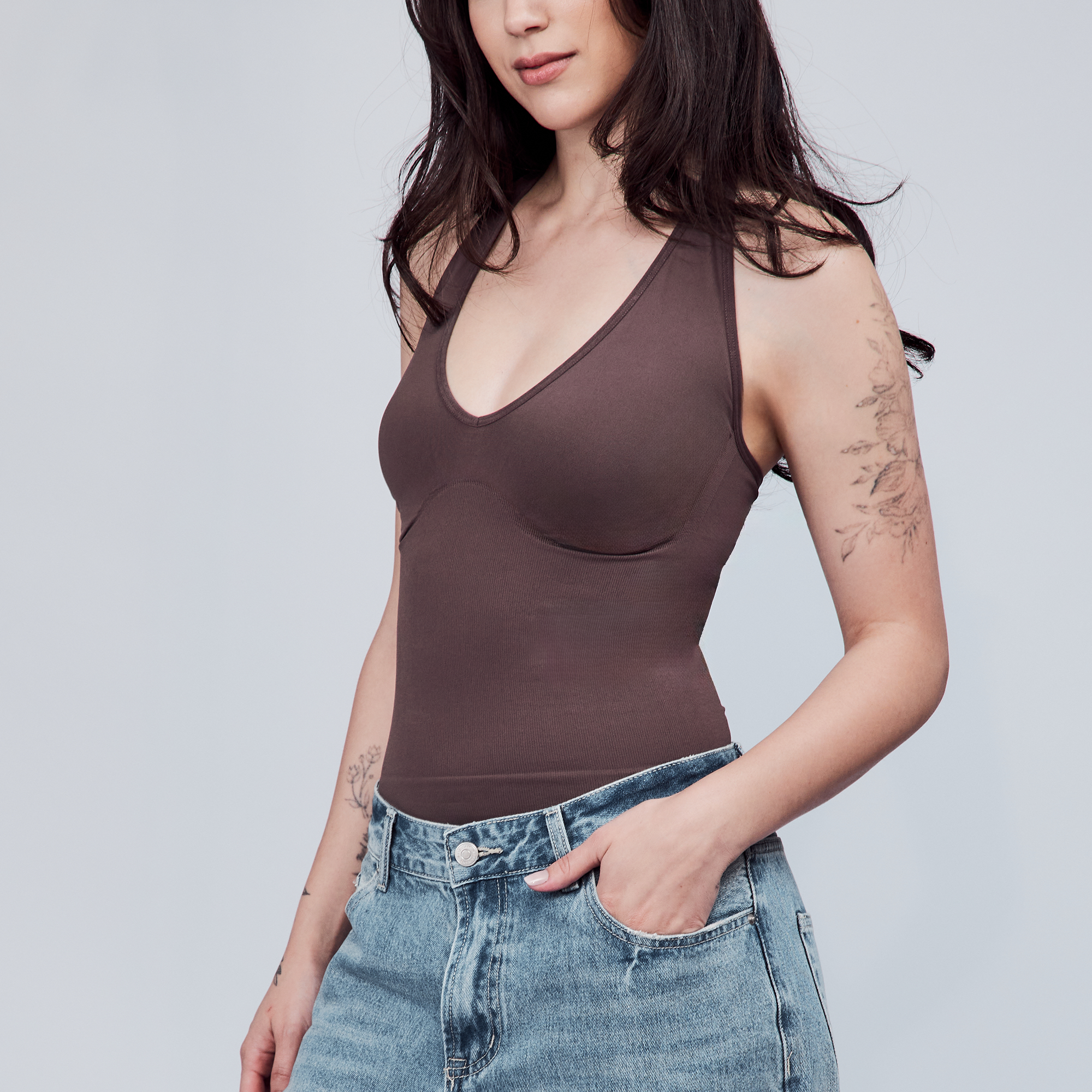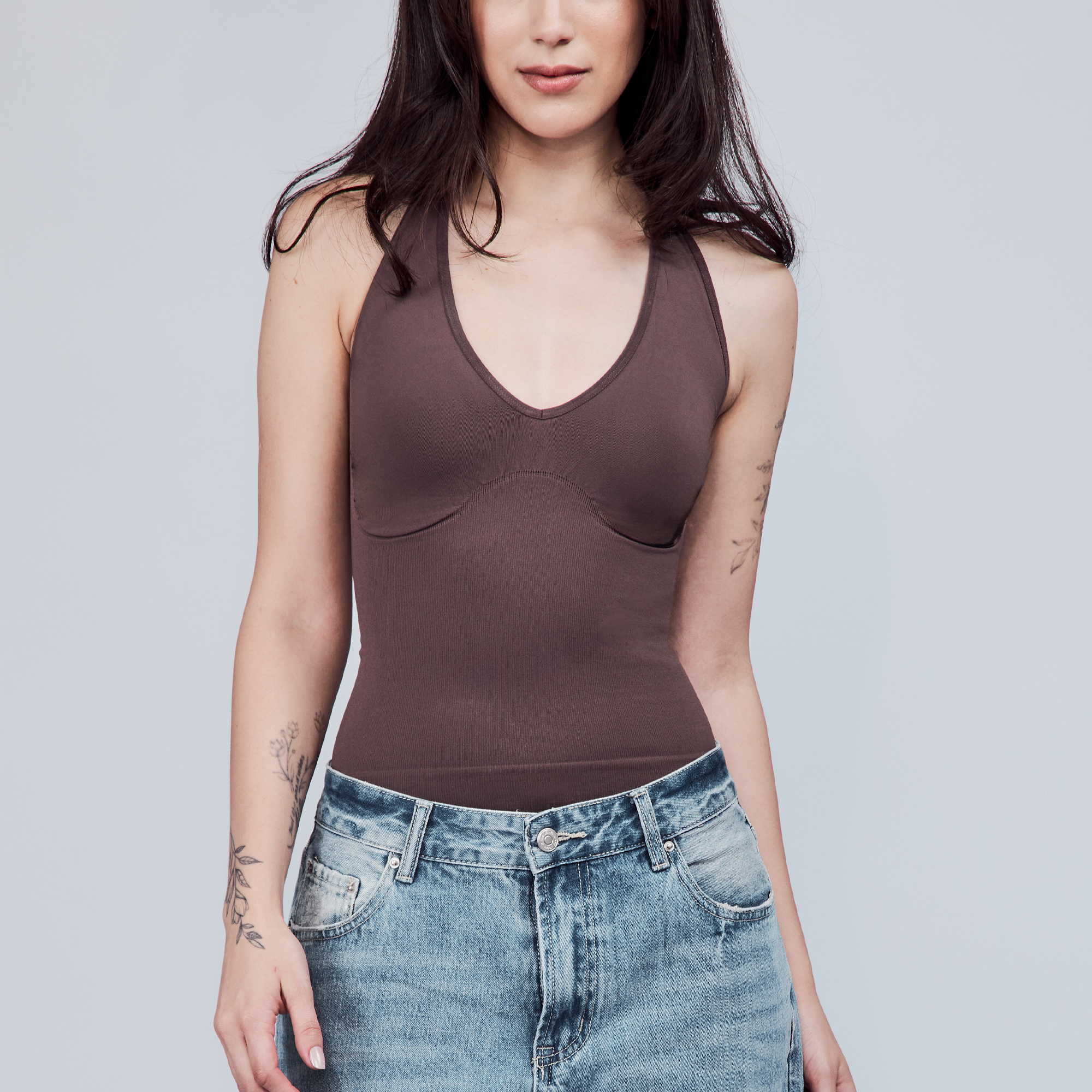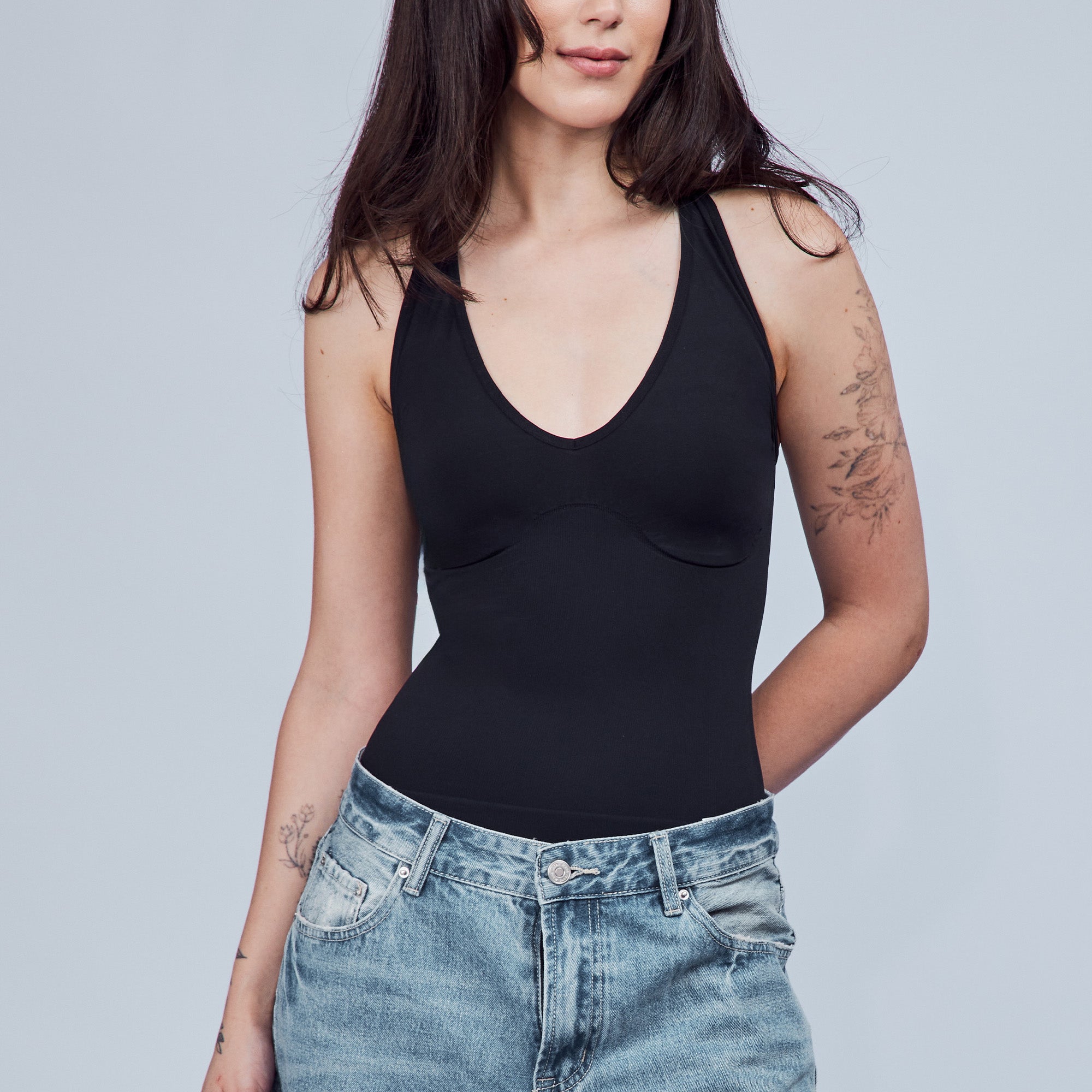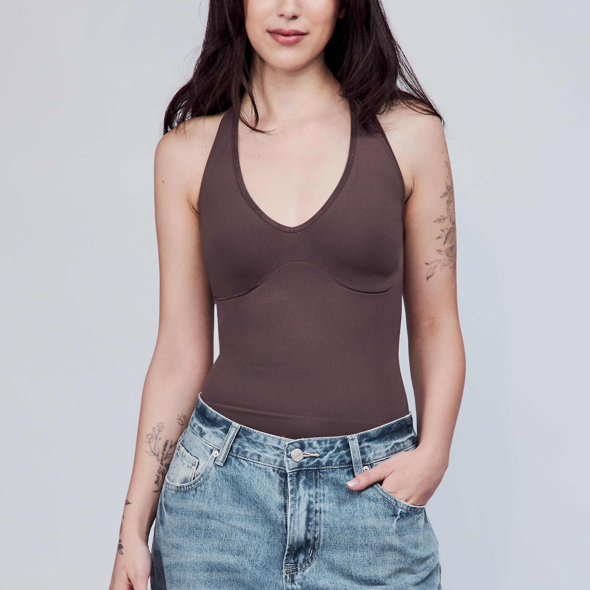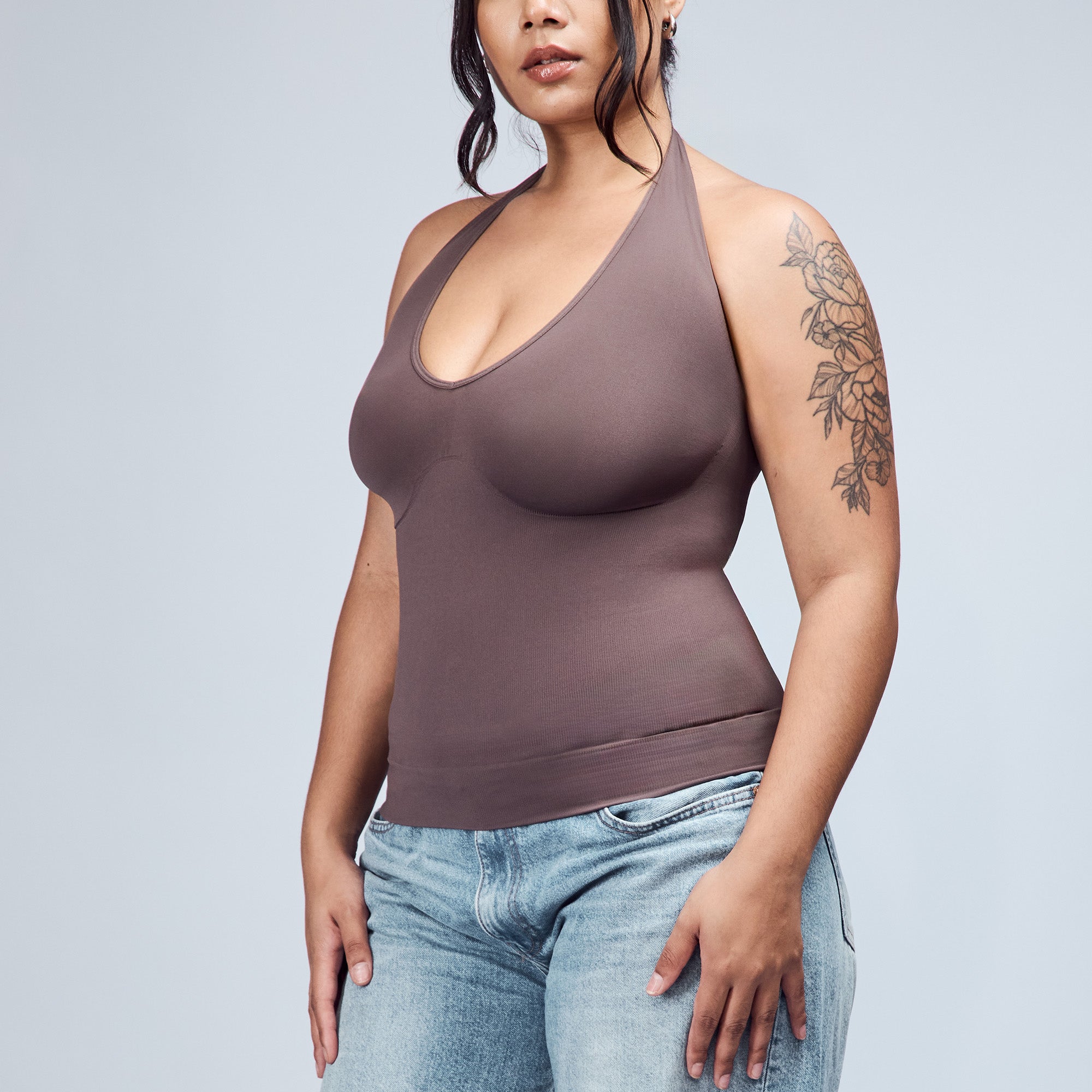 The Hugging Halter Top is a medium-compression shapewear with a flattering plunging neckline and a low-back silhouette. It offers a snug yet comfortable compression through the waist. Versatile and easy to wear, it’s perfect for layering or styling on its own.