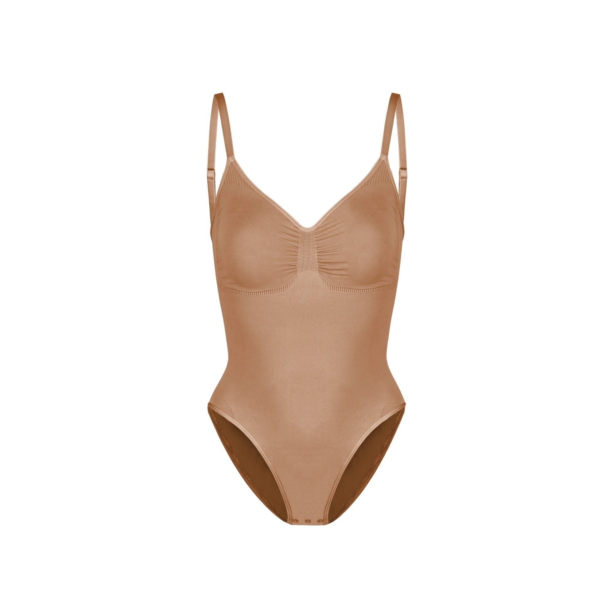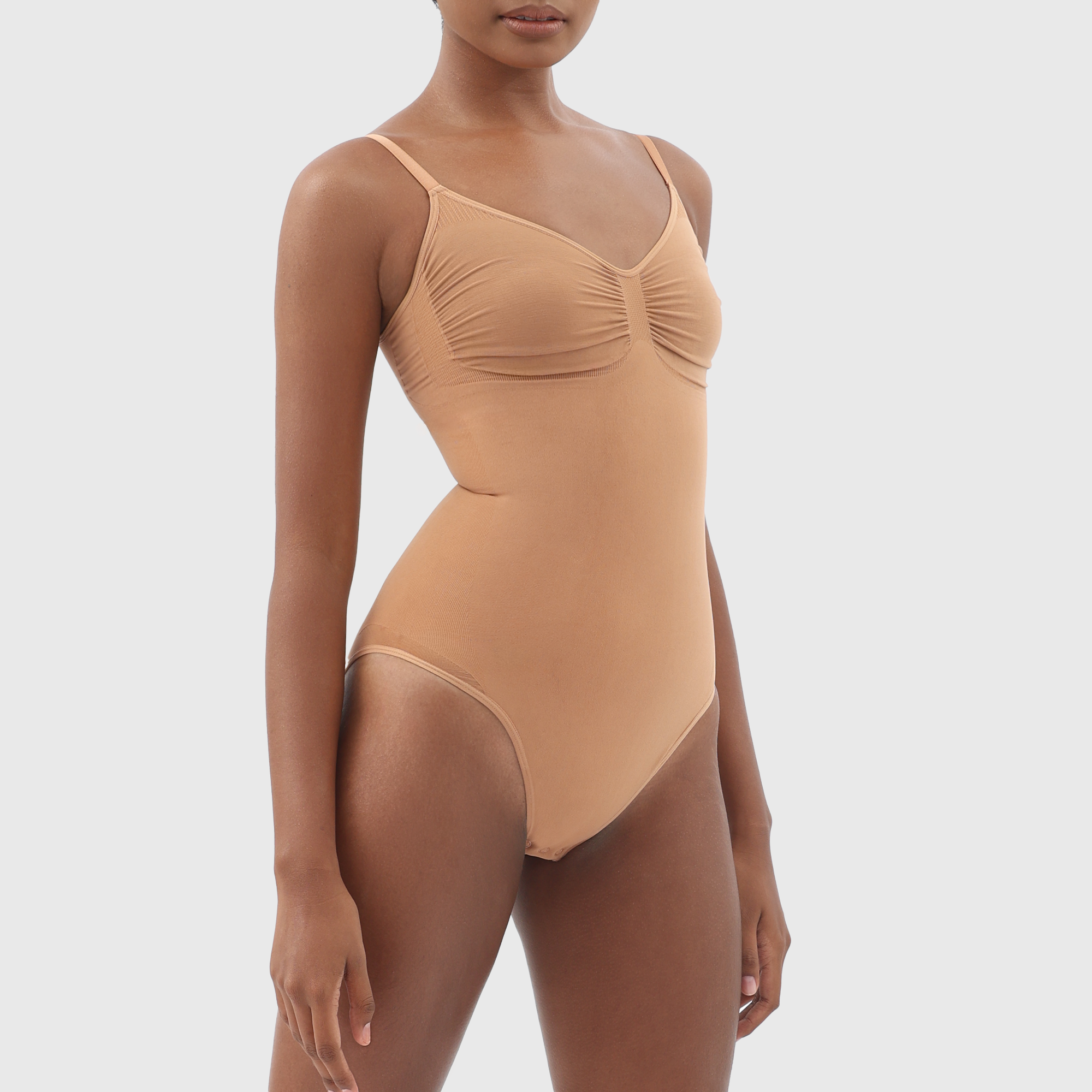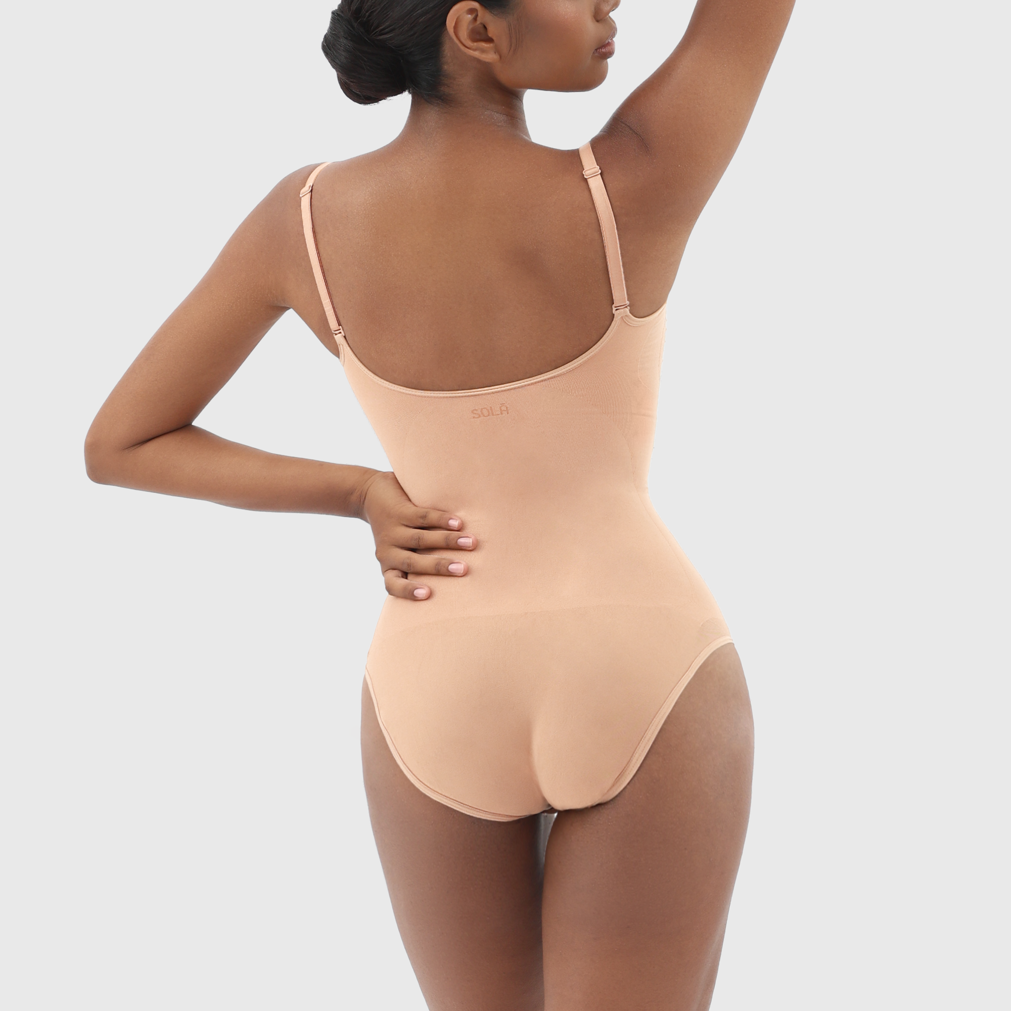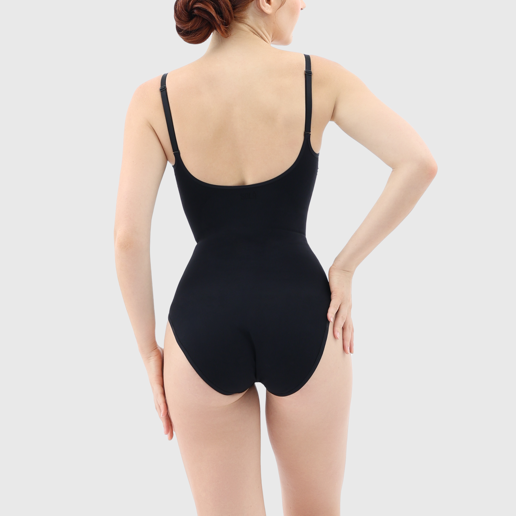 The Classic Sculpting Bodysuit is our classic cut shapewear with a flattering neckline to enhance the bust. It features a strong, tight, and controlled compression at the core and waist. Straps are adjustable & interchangeable. The gusset has triple snap closure and features a flattering yet comfortable bikini style hip line. The new design has improved quality and a subtle branding at the back.