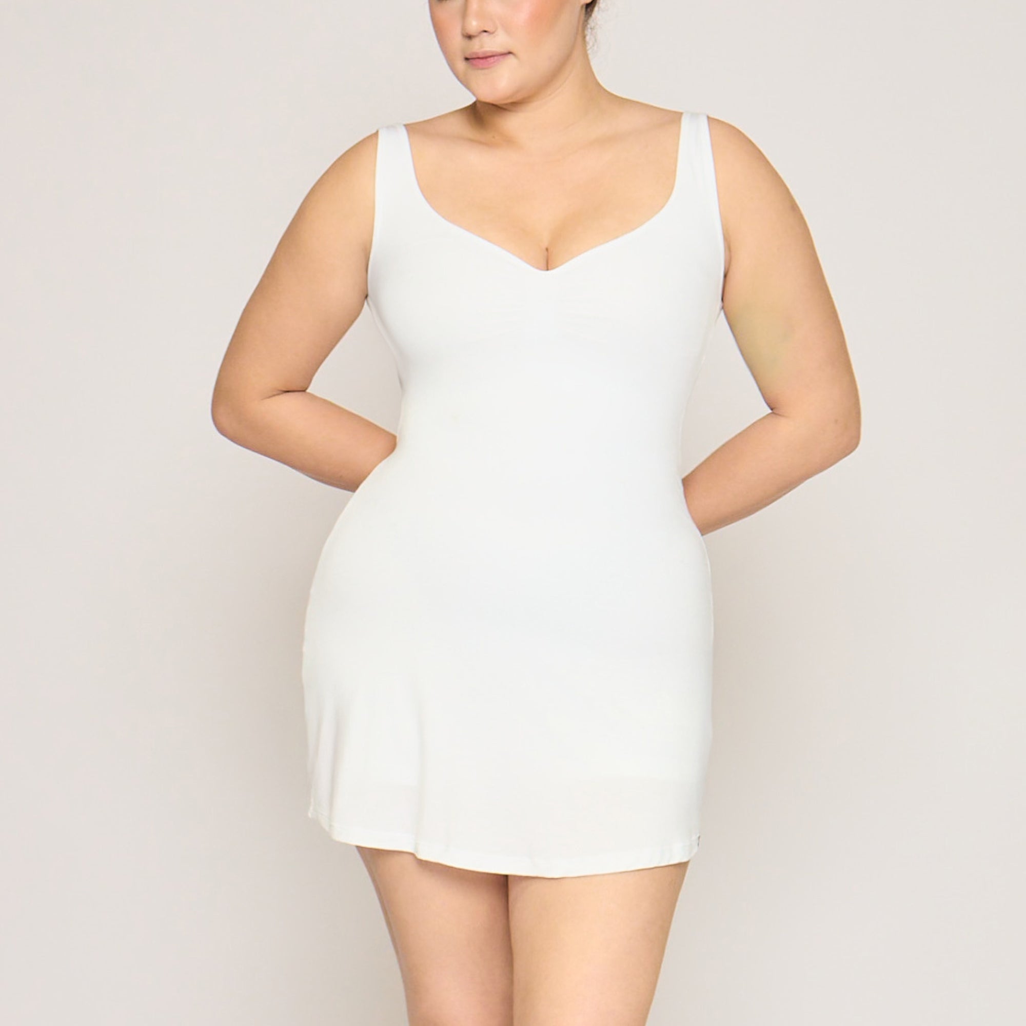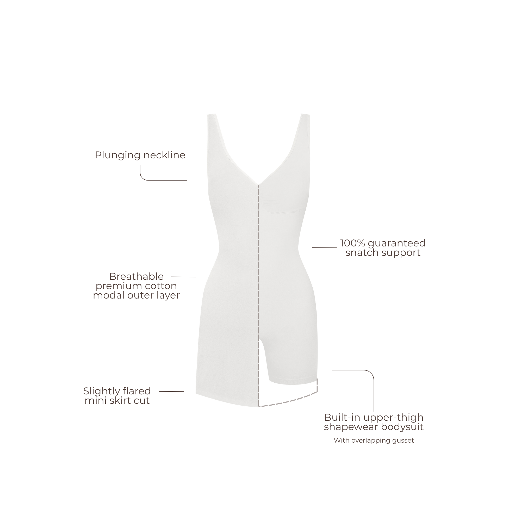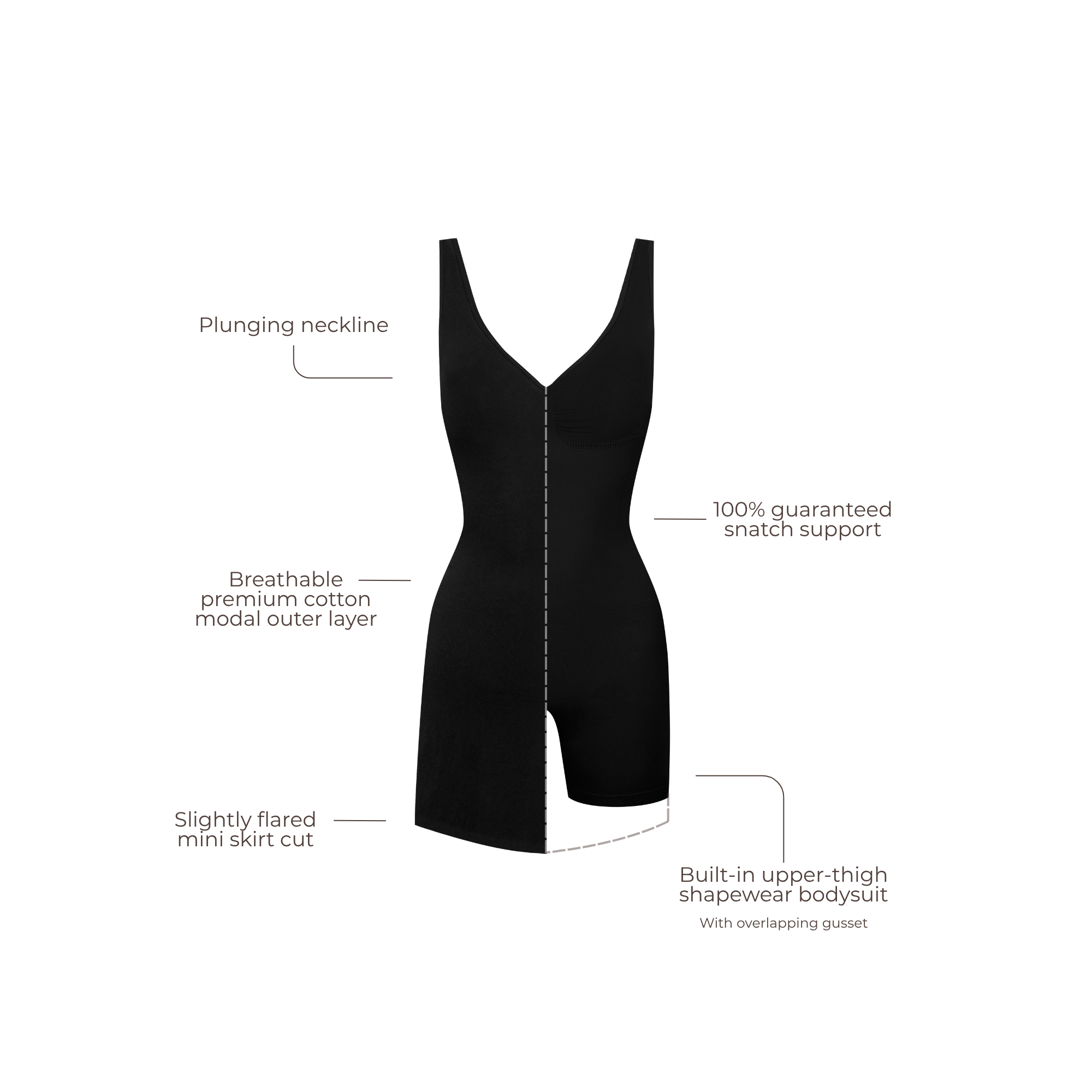- Built-in upper-thigh shapewear bodysuit
