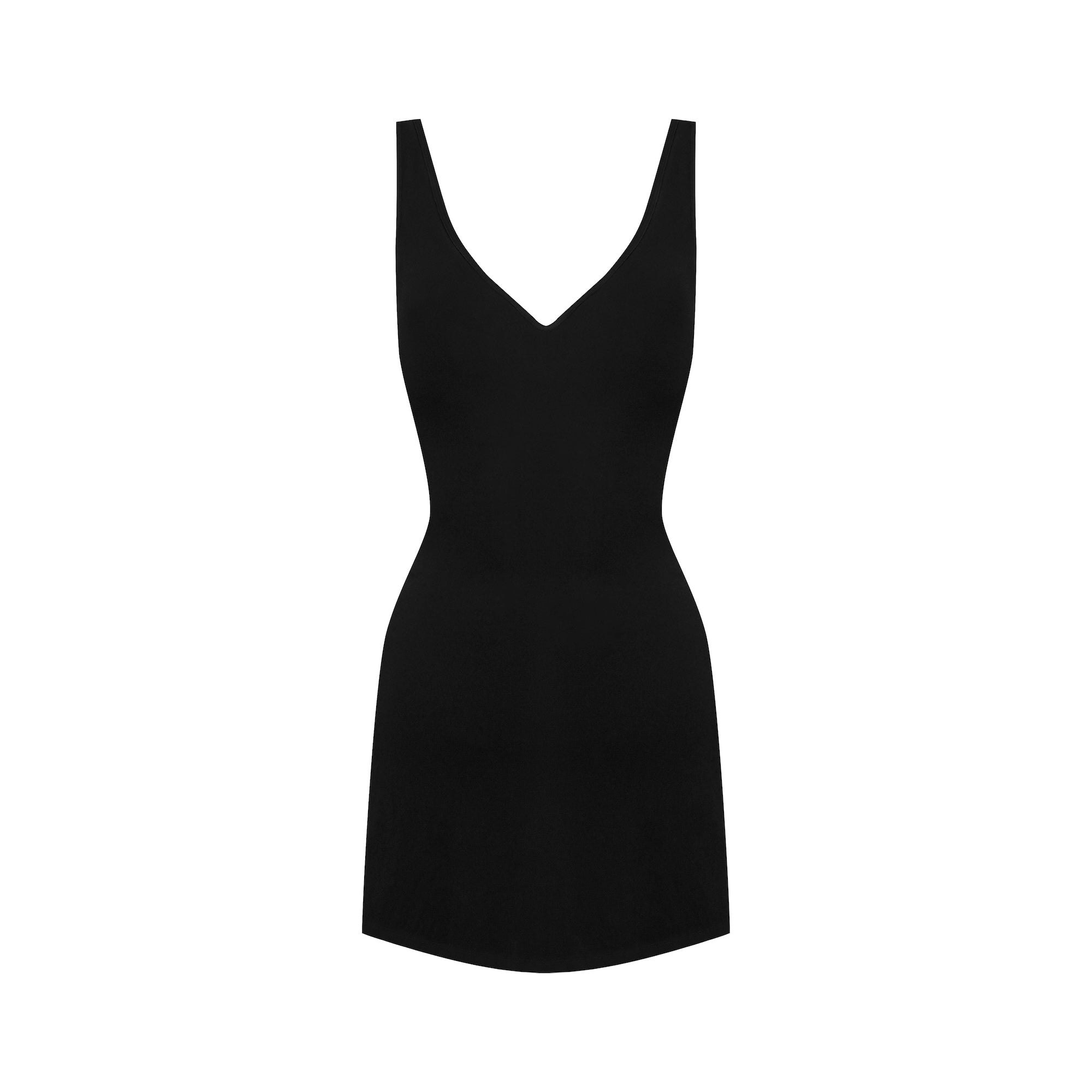 A dress and shapewear in one, designed to smooth, sculpt, and support. The Plunging Sculpting Mini Dress features a built-in upper-thigh shapewear bodysuit that enhances the bust, cinches the waist, lifts the butt, and sculpts the thighs for a flawless silhouette. It has a plunging neckline that highlights the décolletage, scoop back, and a slightly flared mini skirt cut.